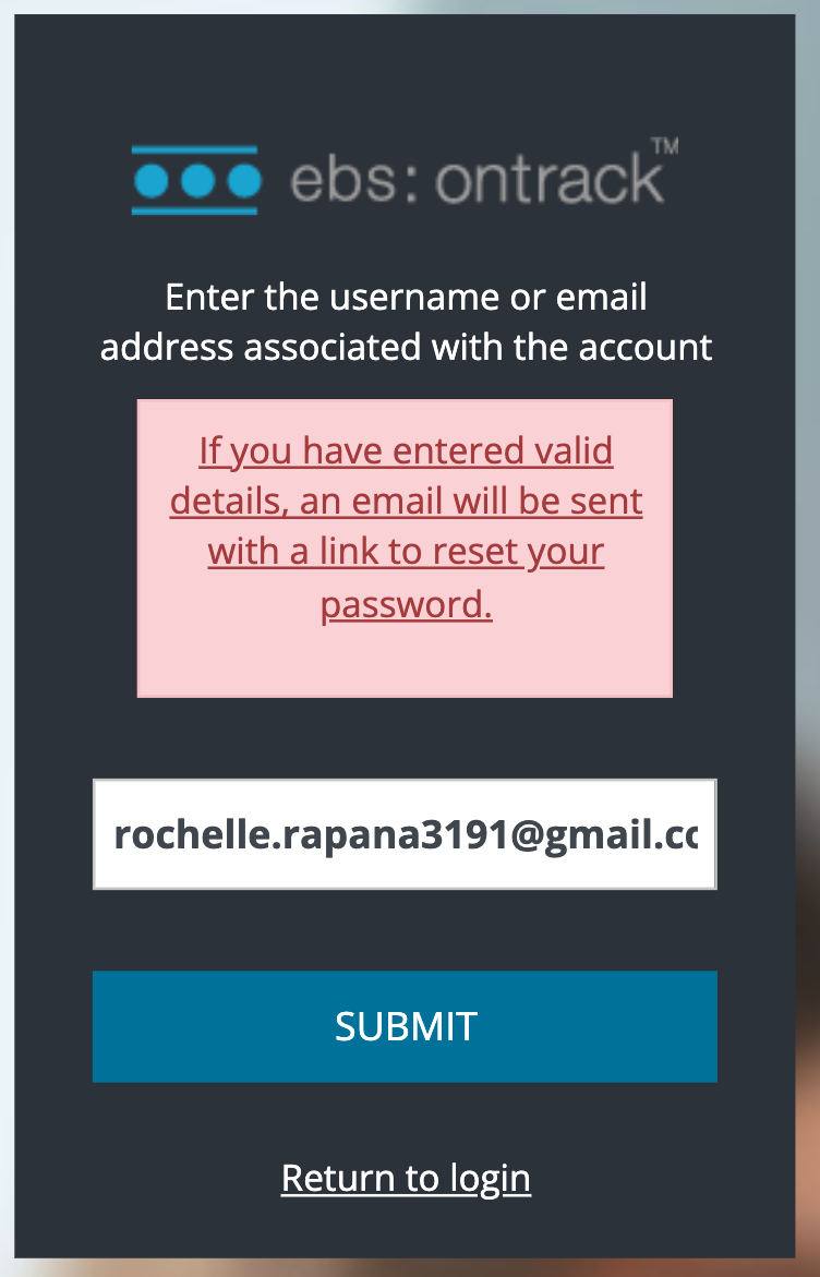 Enter your Urutauira username or your personal email associated with Urutauira then click SUBMIT.
